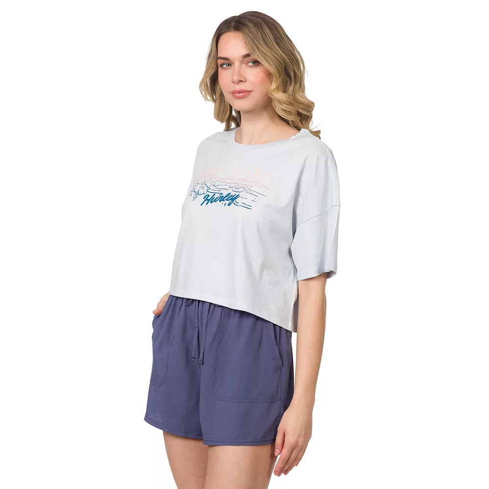 Get a casually cute and comfortable look in this juniors’ floral beach logo tee from Hurley.