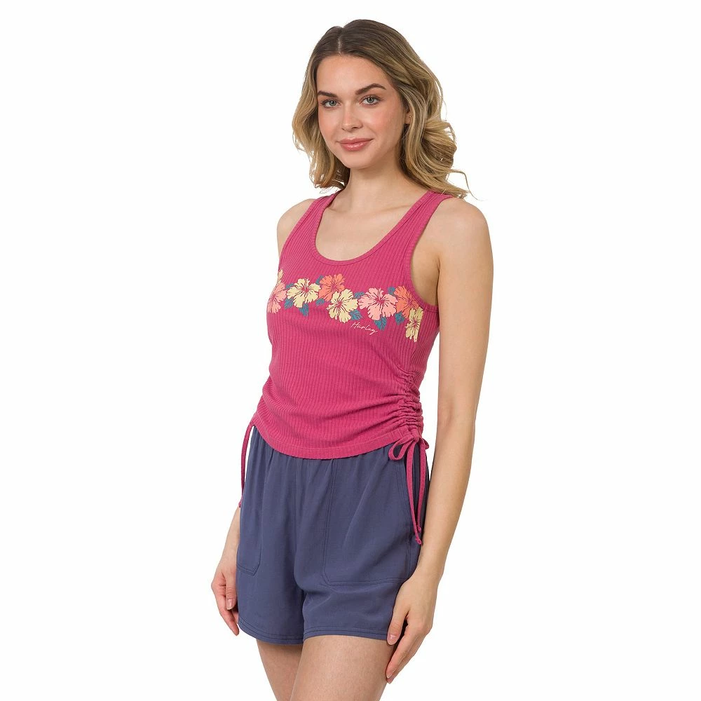 Get a casually cute and comfortable look in this juniors’ flower chain drawstring tank top from Hurley.