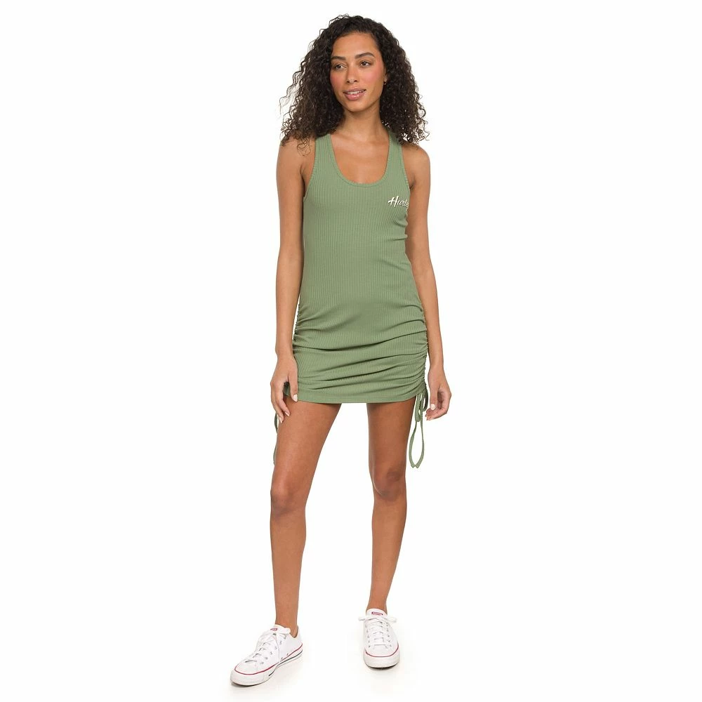 Handy ties at the sides of this sleek juniors’ tank dress from Hurley allow you to adjust the length and cinched details.
