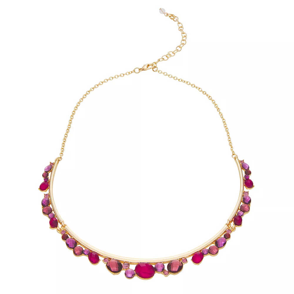 With its sparkling assorted berry colored accents and eye-catching silhouette, this gold tone Napier necklace is the perfect way to finish off any ensemble with a splash of color.
