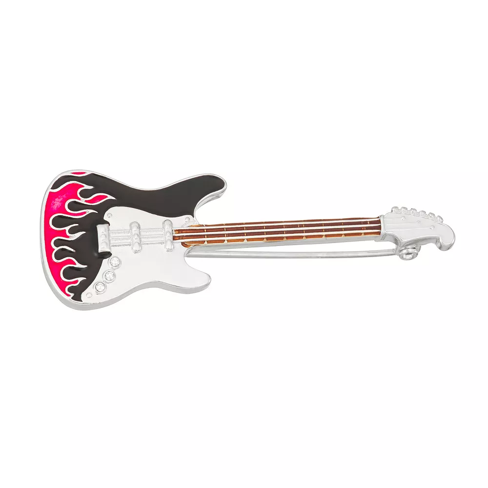 Add a touch of edge to your ensemble with this crystal studded and enameled silver tone electric guitar pin from Napier.