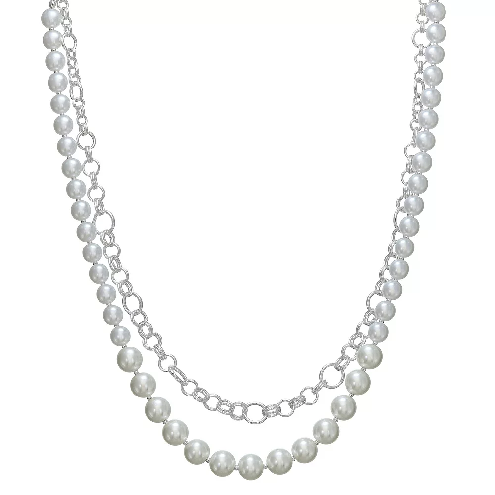 Finish off your look in style in this silver tone chain and simulated string of pearls double-layer necklace from Napier.